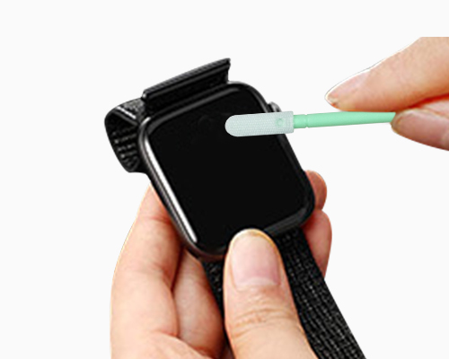 超细纤维无尘布头擦拭棒由聚酯纤维无尘布和PP塑胶杆热塑加工而成,不含有机污染物,如硅、氨、邻苯二甲酸酯,在ISO净化4级的无尘车间用纯水清洗并双袋净化包装,无尘布头用热封边紧紧锁死切边,有效防止微尘粒产生,无尘布具有优越的耐磨性和洁净性能,可反复擦拭,对大部分溶剂包括丙酮有卓越的兼容性,且对溶剂有良好的吸收和锁紧能力。